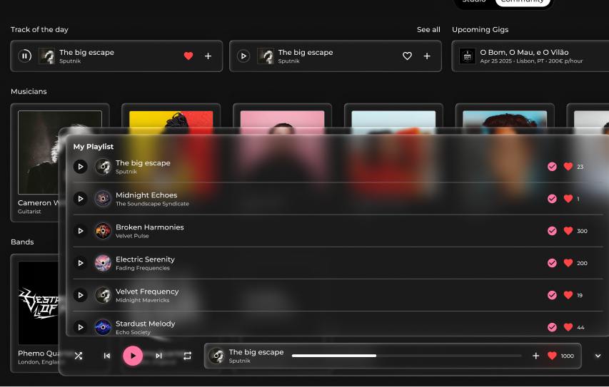 Jammin' is a collaborative music platform that allows musicians to connect and play together in real-time, regardless of their location.